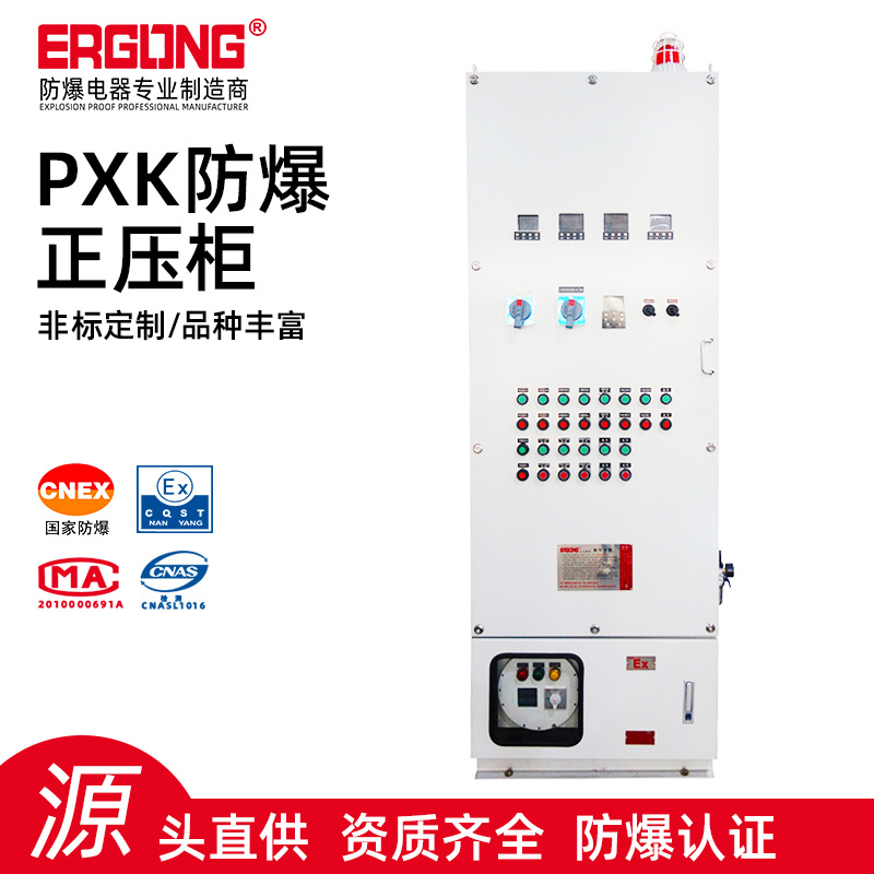 采用介质隔离点燃源的防爆措施。即:把用户所用的电器元件安装在一个充满正压洁净气体的柜体内,使外部环境中易燃易爆的混合性气体无法接触到电器元件在正常工作时所产生的电火花或危险温度,从而达到电器防爆的目的。